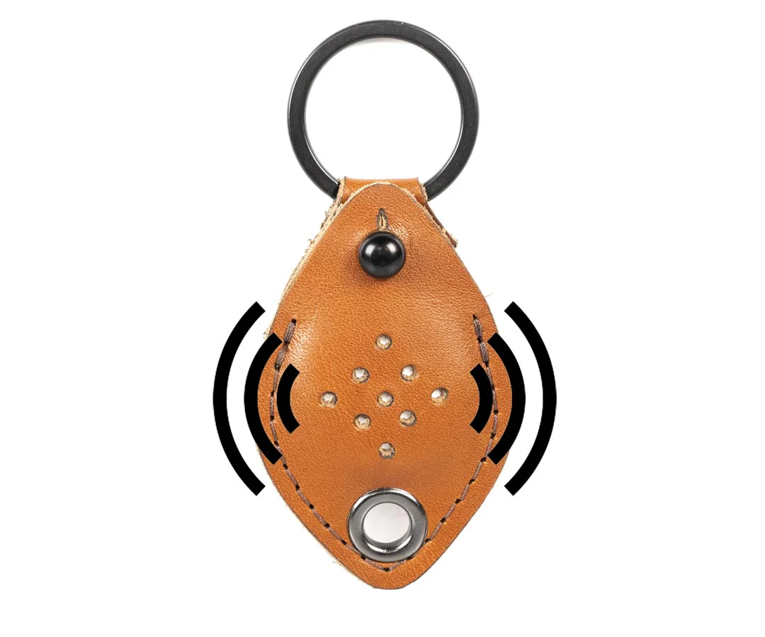 The full-grain leather AirTag Keychain keeps your AirTag discreetly hidden and the smartly-designed perforation lets you hear it beep. Worried about misplacing your keys? Add a carabiner or steel wire ring (included) and attach it to your bag, belt loop, pet collar, etc.Â